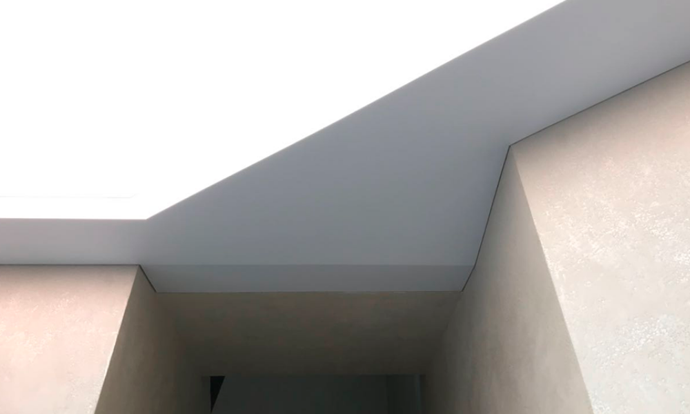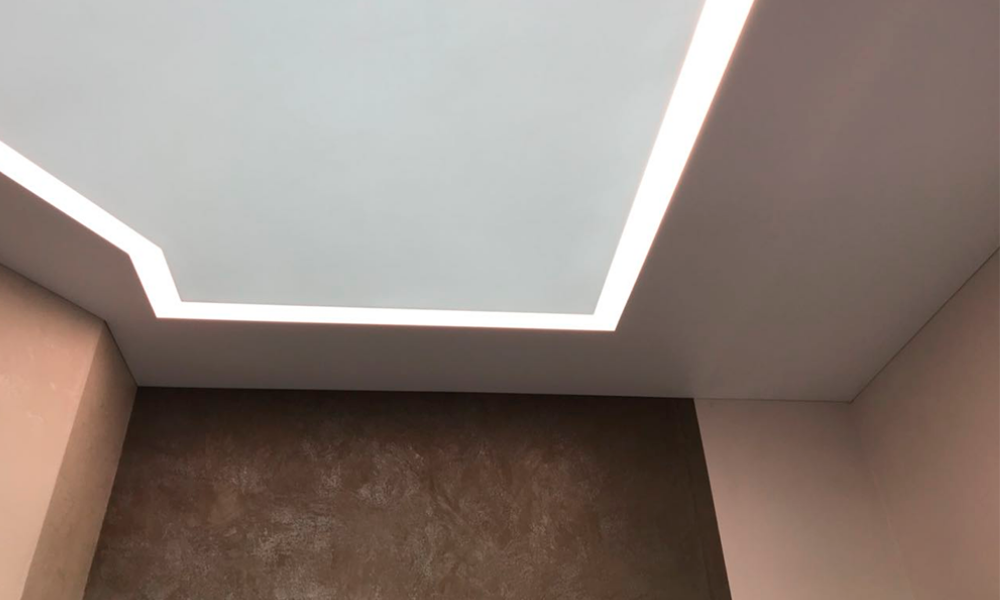 Потолок плотно примыкает к стене, оставляя едва заметную декоративную тень в месте стыка