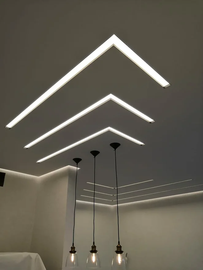 Нишевые световые линии SLOTT без маскировочной ленты подходят для любых натяжных потолков (ПВХ и тканевых)