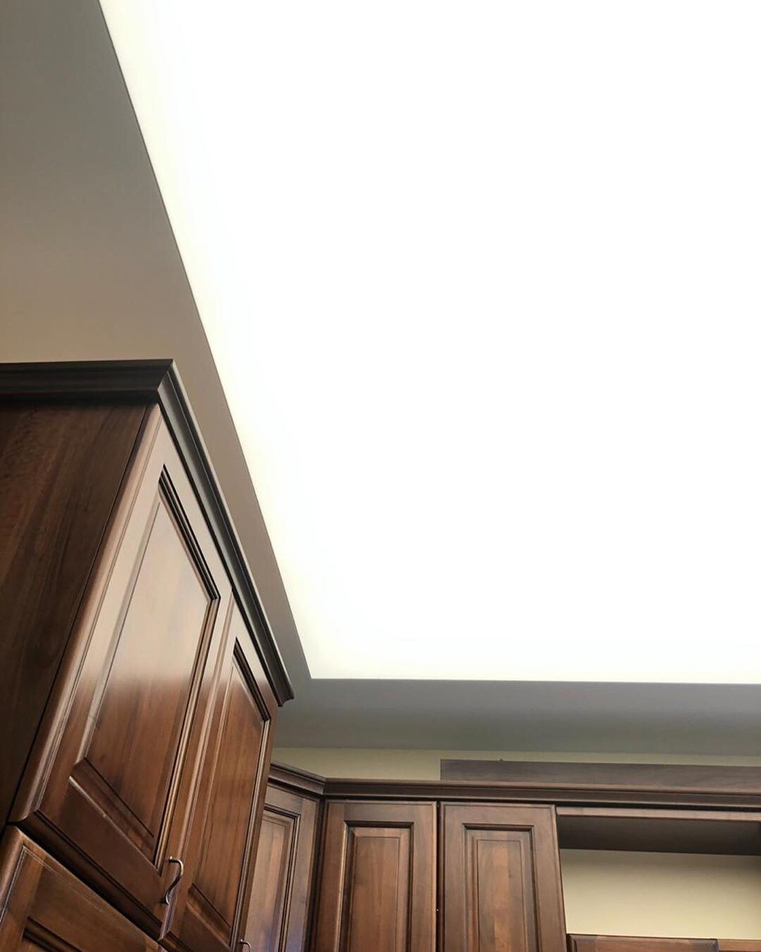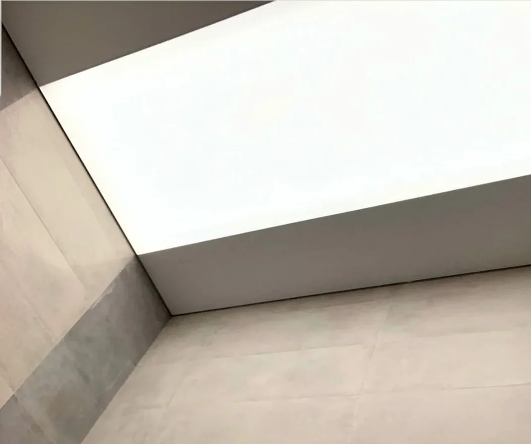 Подсвеченное изнутри натяжное полотно создаёт равномерную световую поверхность без затемнений и бликов