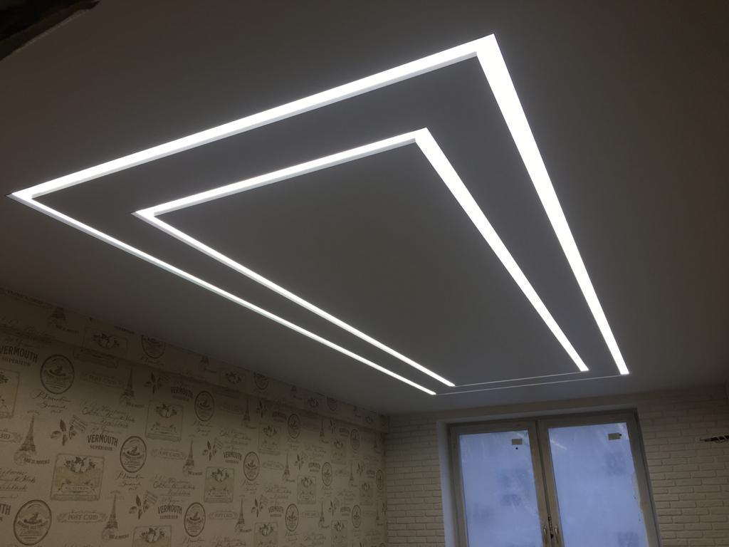 Полная засветка потолка — креативное решение, дающее яркий свет с минимальным потреблением энергии