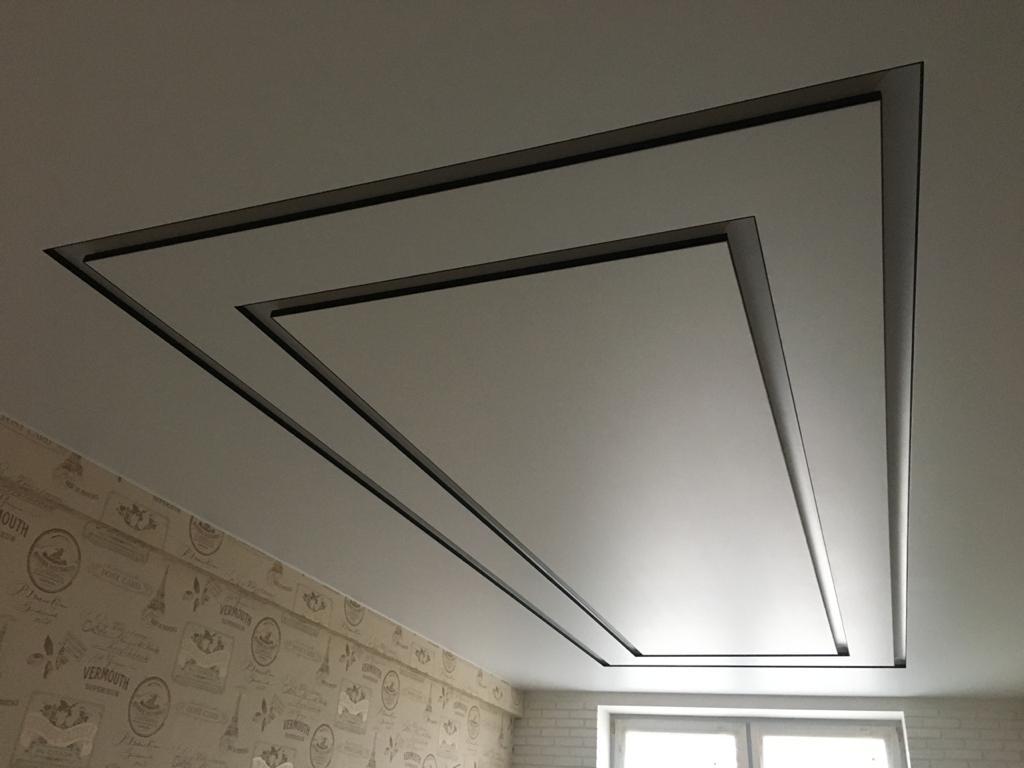 Парящий потолок — сочетание идеальной геометрии и чётких углов благодаря теневому зазору по краям шириной 24 мм
