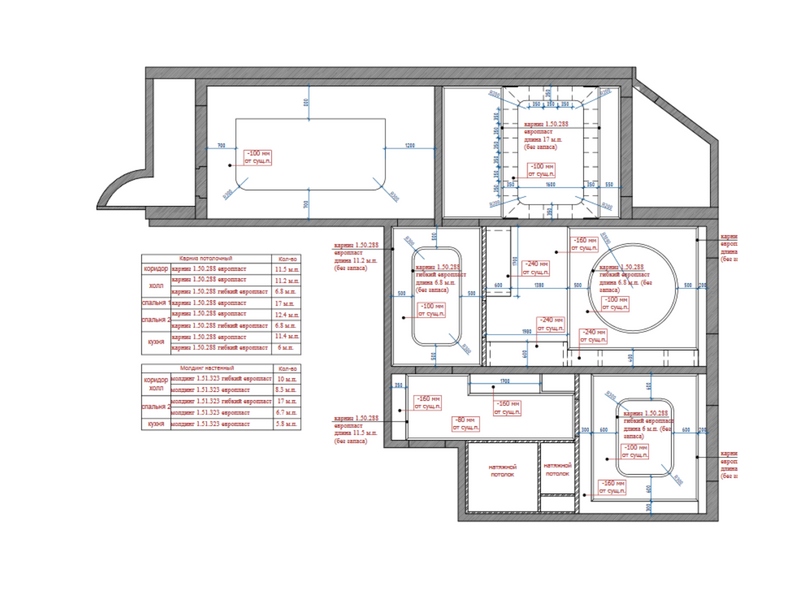 Укажите площадь по полу всех комнат где нужно установить натяжной потолок